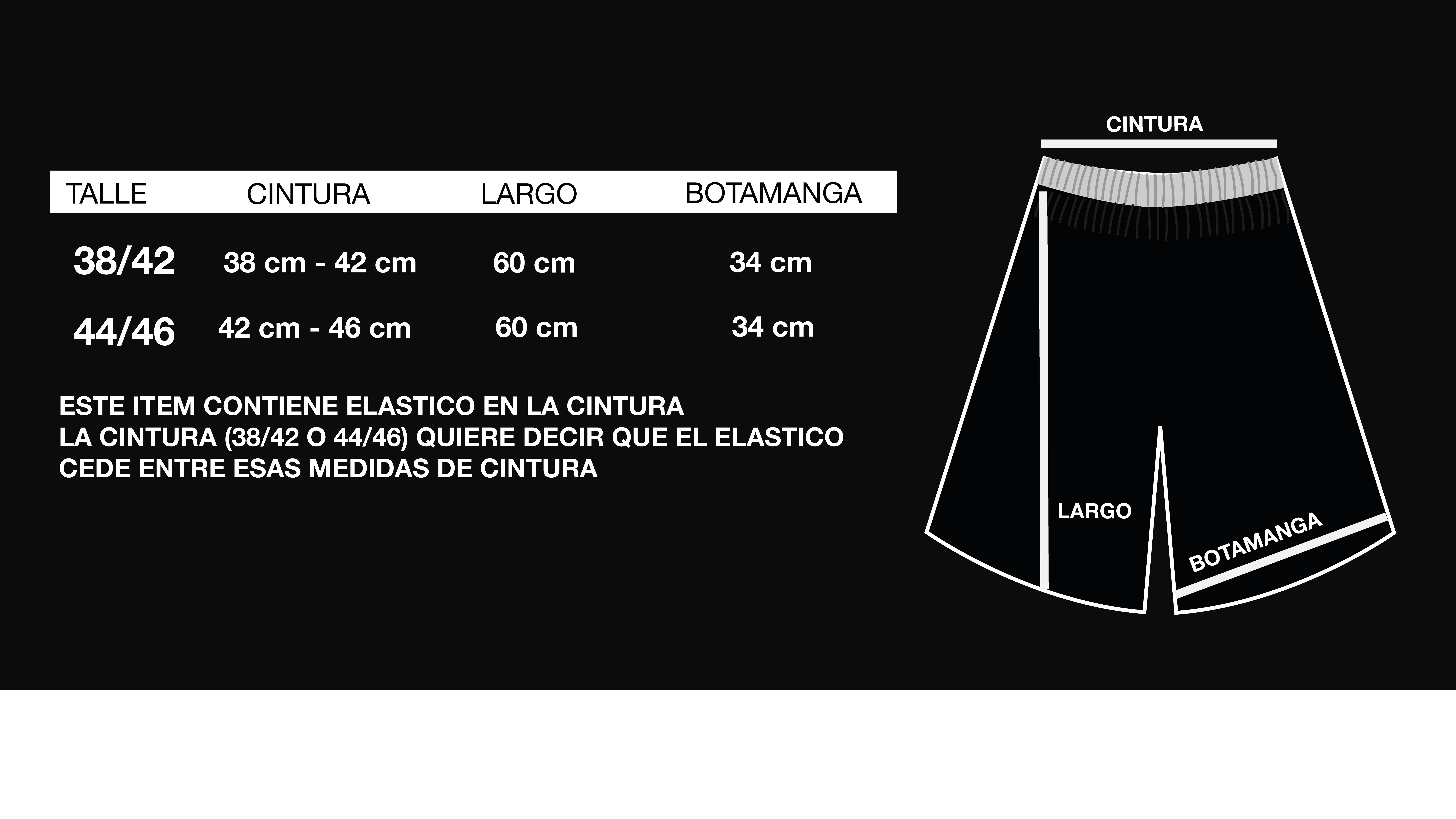 LOS TALLES 38/42 O 44/46 SE BASAN A CUANTO CEDE EL ELASTICO QUE TIENE LA BERMUDA